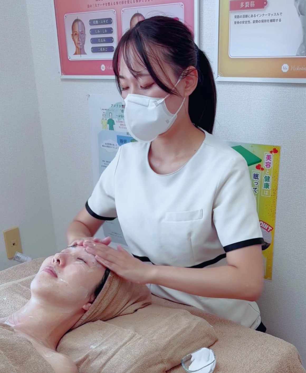 お身体の歪みを整えて筋肉を緩めてから、お顔のお肌ケアをさせていただきます。骨格の歪みを整えてワントーン明るくもっちりぷるんとしたお肌に!美肌と健康にアプローチができ、根本的にお肌とお身体を維持・予防していくメニューになっています!(骨盤調整付き)